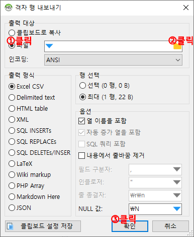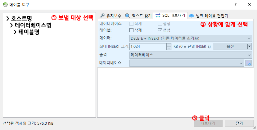 ③ 원래 있던 테이블을 비우고 새 데이터로 채우려면 체크한다.