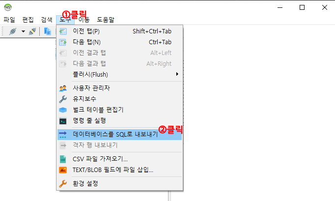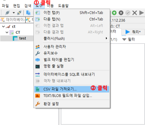 ⑥ 드롭다운 버튼을 클릭하고 데이터베이스를 선택한다.
